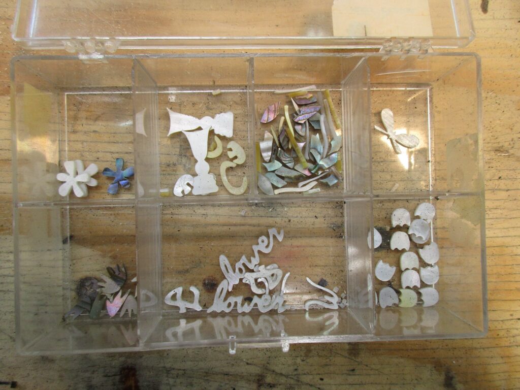 I also cut my own mother of pearl and abalone inlay patterns using my CNC machine. If you are interested in custom inlays, contact me, and we can discuss it. My number is (970) 443-1954 or email me at durljones@gmail.com